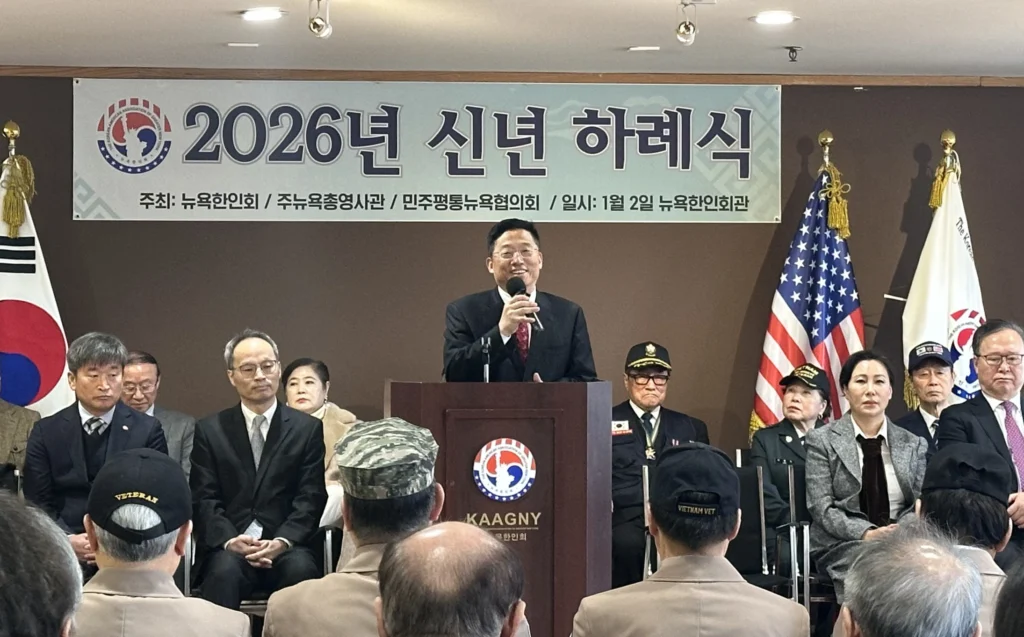 2일 금요일 오전, 맨해튼 24스트릿에 위치한 뉴욕한인회관에서 2026년 신년 하례식이 개최됐습니다. 이 자리에서 이명석 뉴욕한인회장은, 지난 2025년 자신이 부족한 점도 많이 있었다며, 하지만 비가 온 뒤 땅이 굳는것 처럼 신년하례식을 계기로 뉴욕한인회는 한인 동포들의 지지와 격려로 글로벌 뉴욕한인회가 될 수 있도록 노력하겠다고 말했습니다.